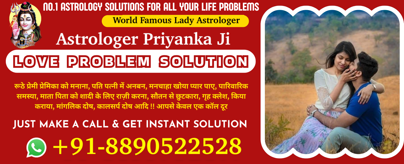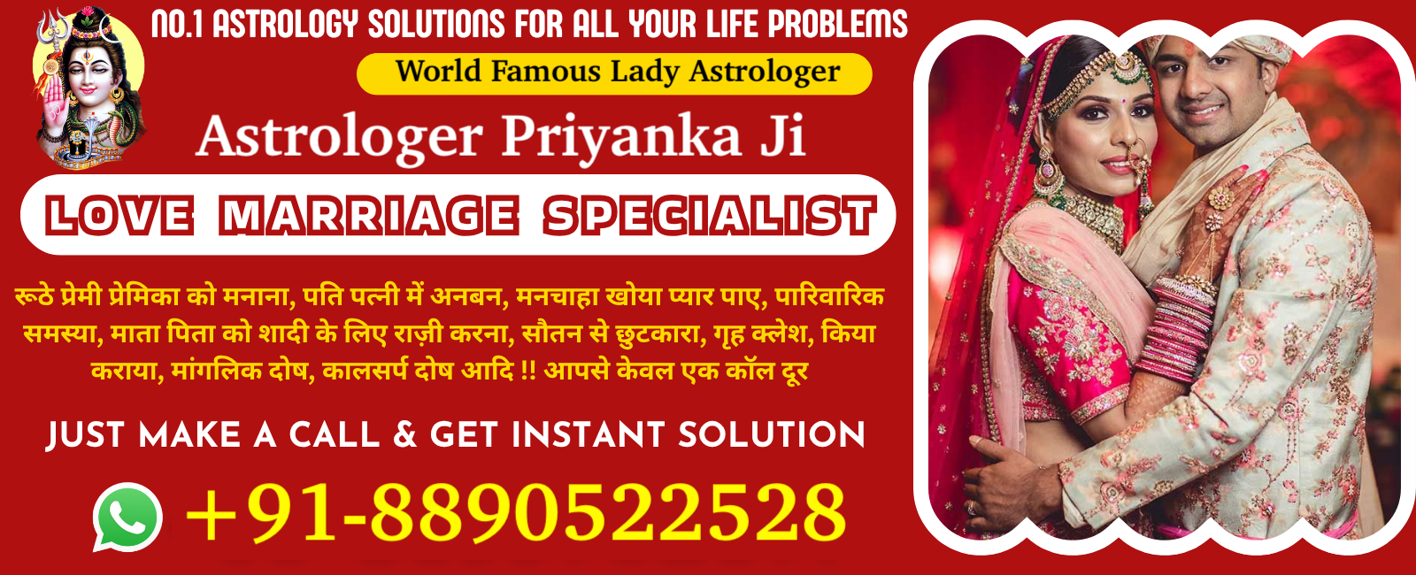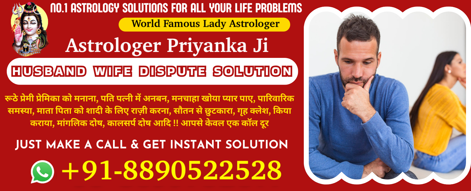 एक कॉल आपके जीवन को हमेशा के लिए बदल सकता है, आशा मत खोना और हार मत मानो! सिद्ध और अनुभवी ज्योतिषी, कॉल या व्हाट्सएप पर चैट करें. पारिवारिक समस्या. पति पत्नी में अनबन. मनचाहा खोया प्यार पाए. क्या आप अपनी हर इच्छा पूरी करना चाहते हैं? बाबा से अपनी हर समस्या का समाधान करवाना चाहते हैं? अब समाधान है बिलकुल आसान। अभी संपर्क कीजिये बाबा जी को और समाधान पाइये बिलकुल निशुल्क आपके विश्वास को टूटने नहीं दूंगा ! जिनका काम अभी तक नही होया वो जरूर फ़ोन करे! बस अब दुःख और नहीं आप किसी भी समस्याओ से परेशान है तो अभी फ़ोन करे घर बैठे समाधान करवाये। लव मैरिज, लव प्रॉब्लम, ग्रह कलेश, पति पत्नी में अनबन, शादी में रूकावट, सौतन व् दुश्मन से छुटकारा, सभी समस्याओ का हल सिर्फ एक फ़ोन कॉल +91-8890522528